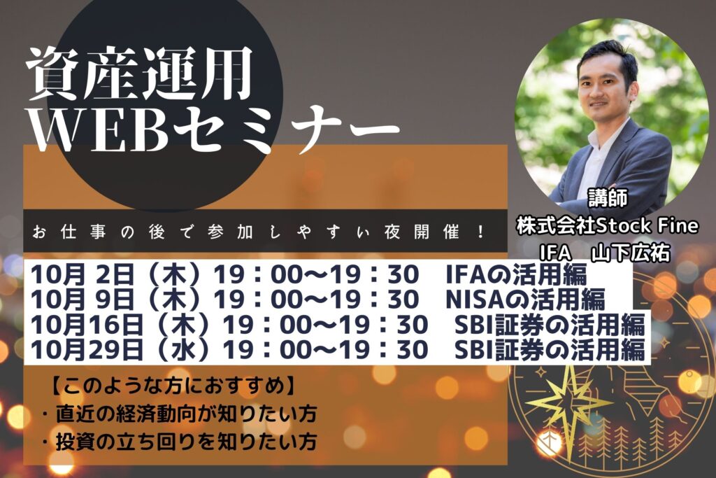 10/29(水):資産運用WEBセミナー「SBI証券の活用編」