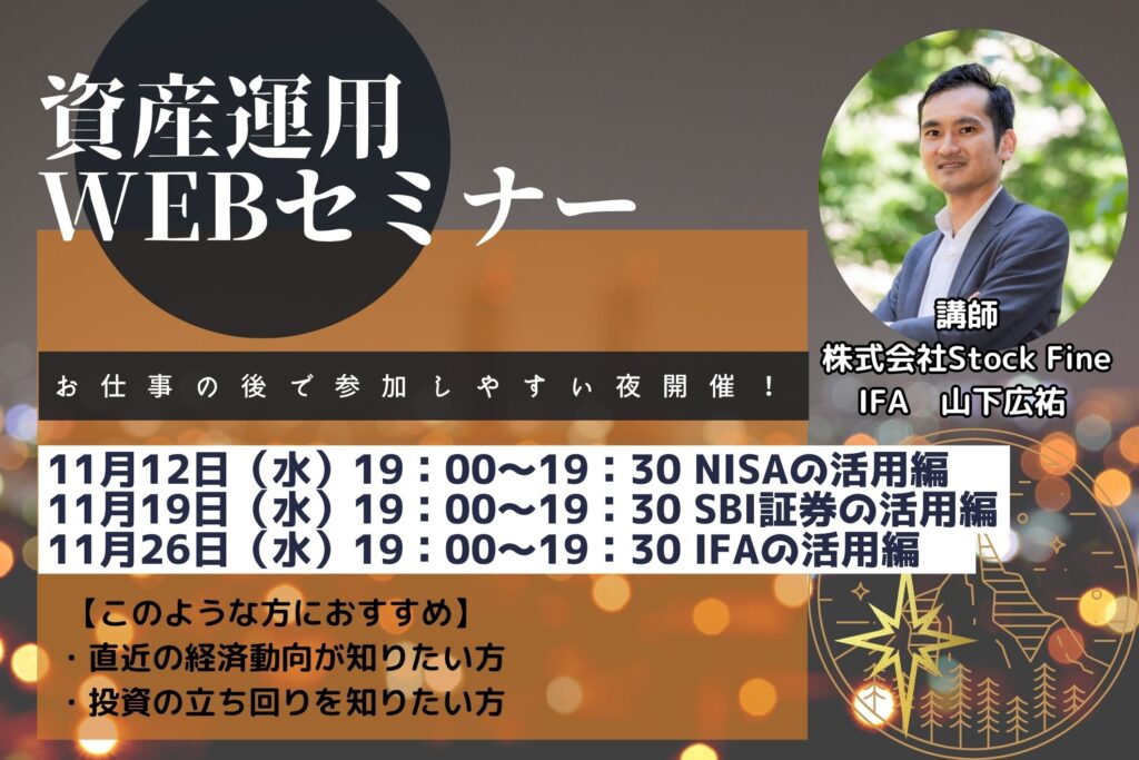 11/19(水):資産運用WEBセミナー「SBI証券の活用編」