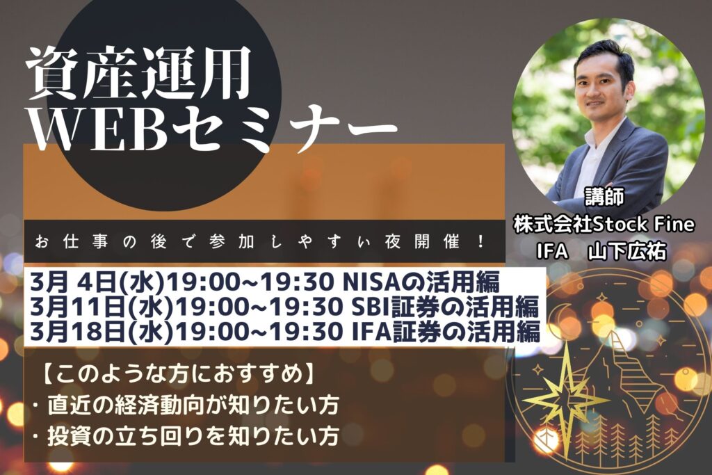 3/11(水):資産運用WEBセミナー「SBI証券の活用編」